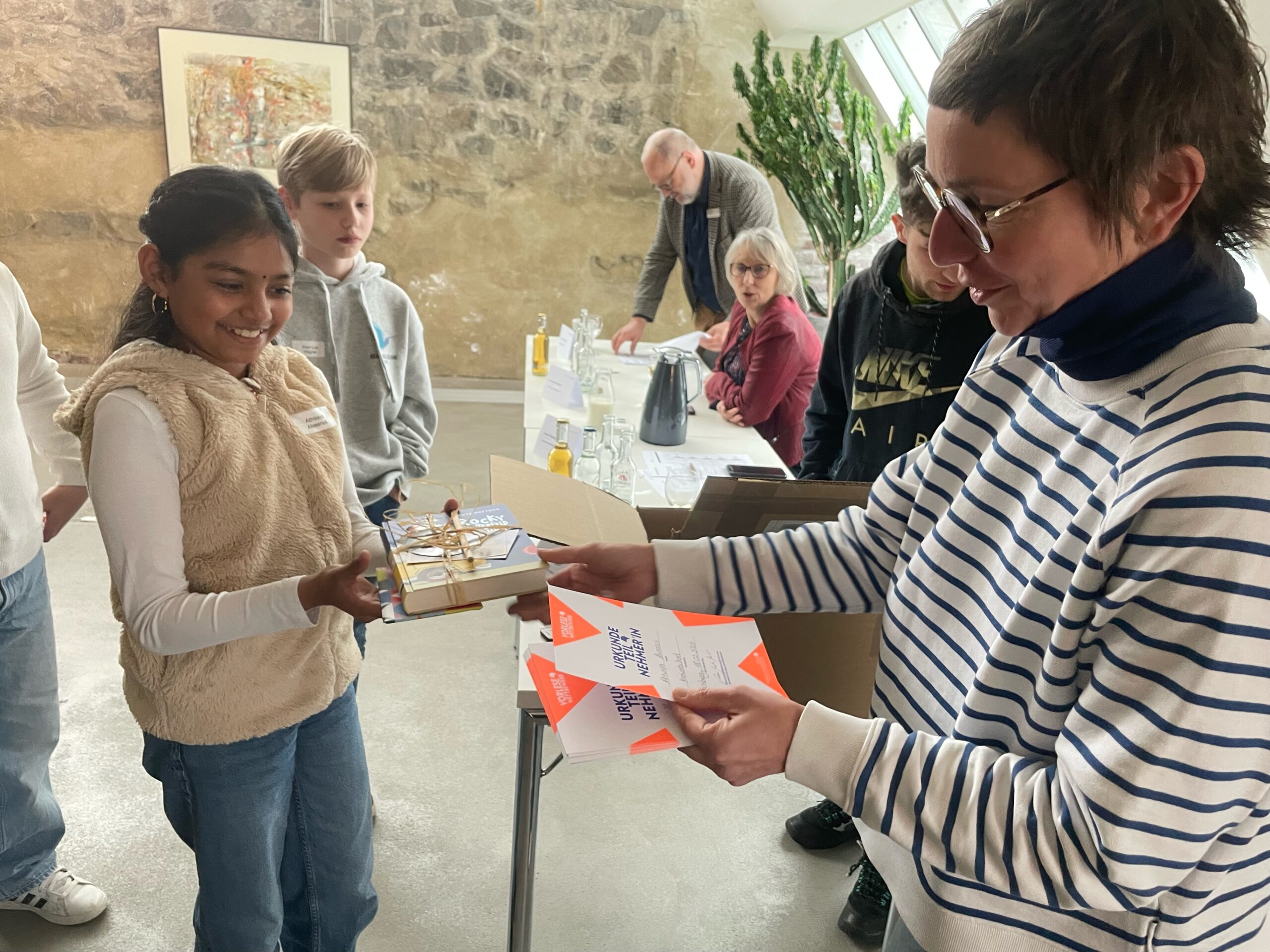 Heute fand in Arnsberg im Blauen Saal des Sauerlandmuseums der Stadt-/Kreisentscheid Hochsauerland West des Vorlesewettbewerbs statt. Unsere Schülerin Athisaya Alveenus hat mit dem zweiten Platz eine hervorragende Leistung erbracht. Sie las eine Textstelle aus dem Roman: “Die Schule der magischen Tiere. Top oder Flop“ von Margit Auer. Durch ihren sehr lebendigen und anschaulichen Lesevortrag – besonders des Fremdtextes- erlangte sie einen Platz auf dem Siegertreppchen. Wir gratulieren ihr herzlich zum Schulsieg und zum zweiten Platz des Kreisentscheids.