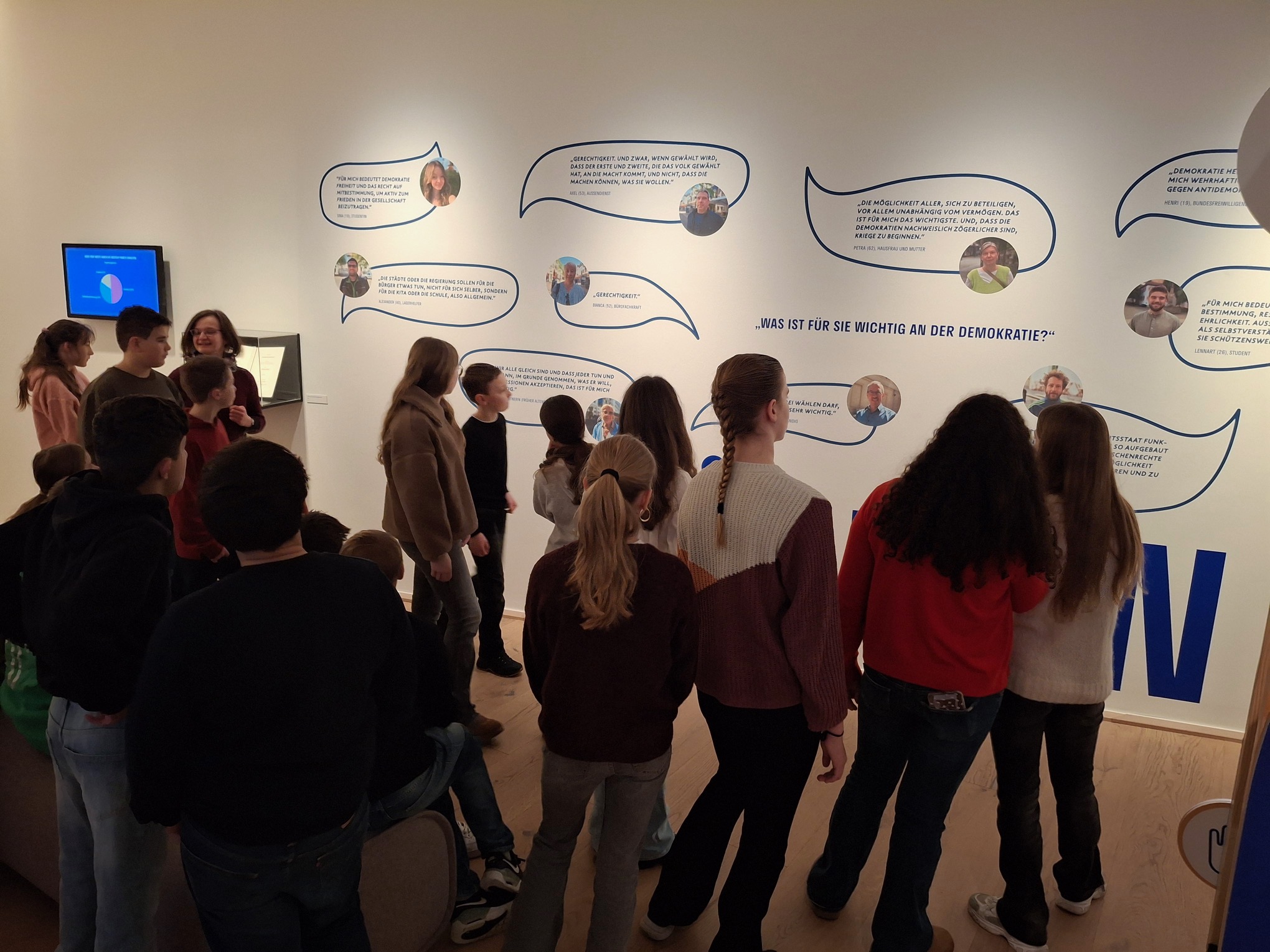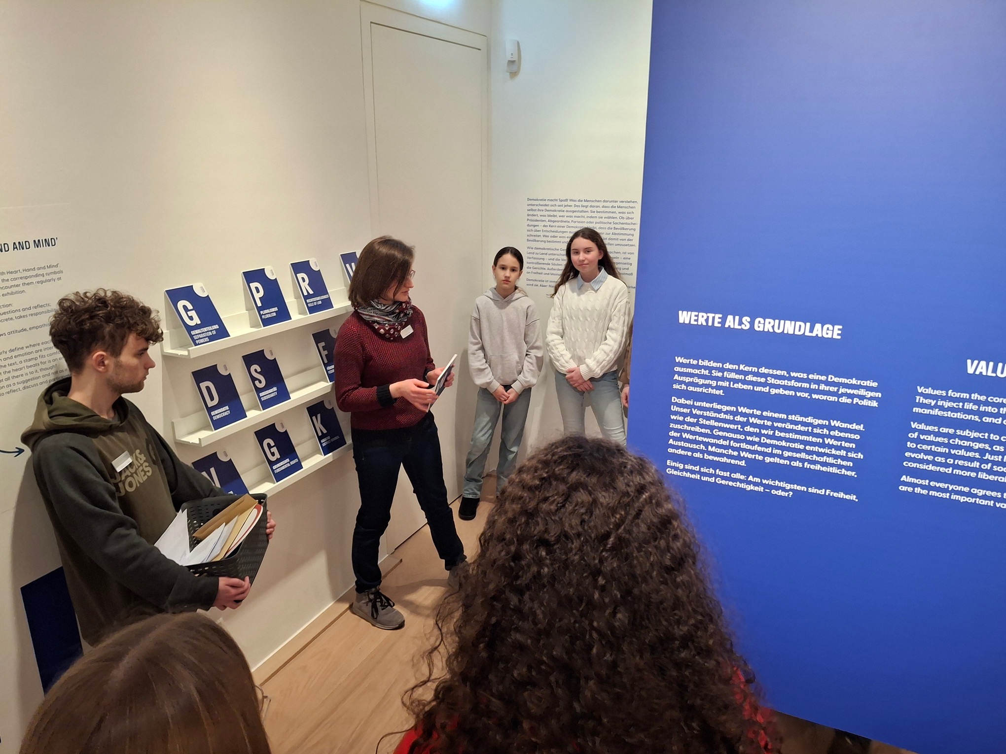 Spielerisch wurden zunächst demokratische Grundbegriffe erarbeitet. Vertiefend beschäftigten sich die Schülerinnen und Schüler der Klasse 7b anschließend handlungsorientiert mit dem so wichtigen Thema Demokratieerziehung in der Sonderausstellung “Demokratie mit Kopf, Herz und Verstand”.